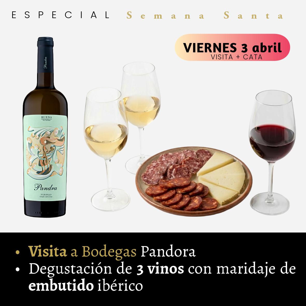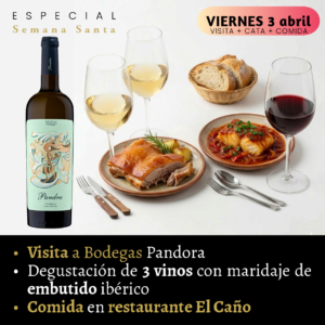 Condiciones de la actividad: Bodegas Pandora se reserva el derecho de cancelar la experiencia si no se alcanza un número mínimo de asistentes. En ese caso, nos pondremos en contacto contigo para ofrecerte una fecha alternativa. Si esta nueva opción no te encaja, se procederá a la devolución íntegra del dinero.
