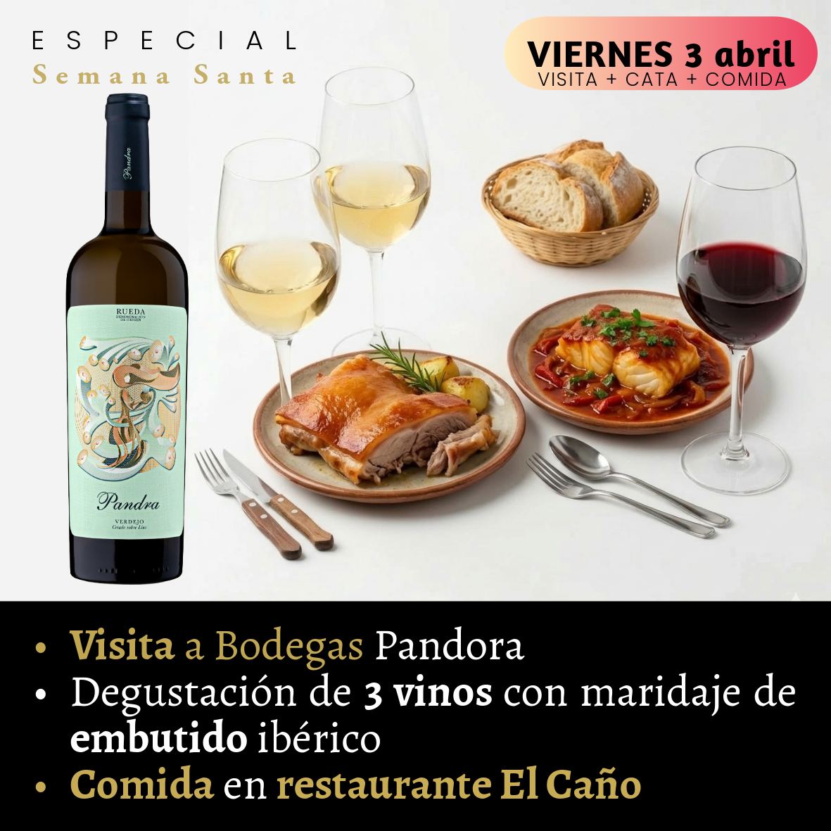 PLAN COMPLETO VIERNES 3 DE ABRIL:Visita, Cata, Maridaje y COMIDA en Brasería Caño de la Vega