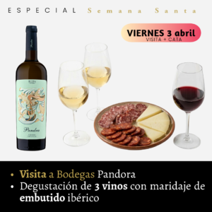 • Condiciones de la actividad: Bodegas Pandora se reserva el derecho de cancelar la experiencia si no se alcanza un número mínimo de asistentes. En ese caso, nos pondremos en contacto contigo para ofrecerte una fecha alternativa. Si esta nueva opción no te encaja, se procederá a la devolución íntegra del dinero.